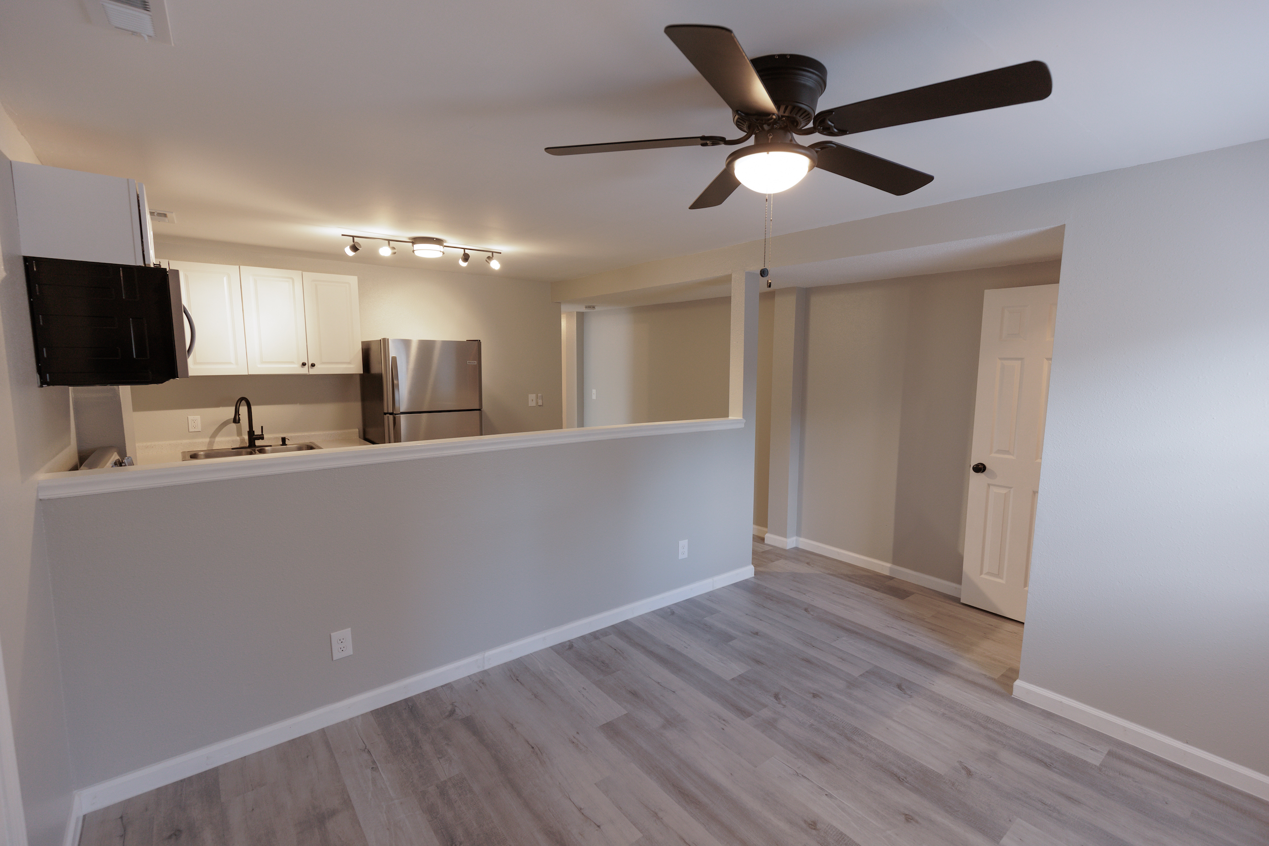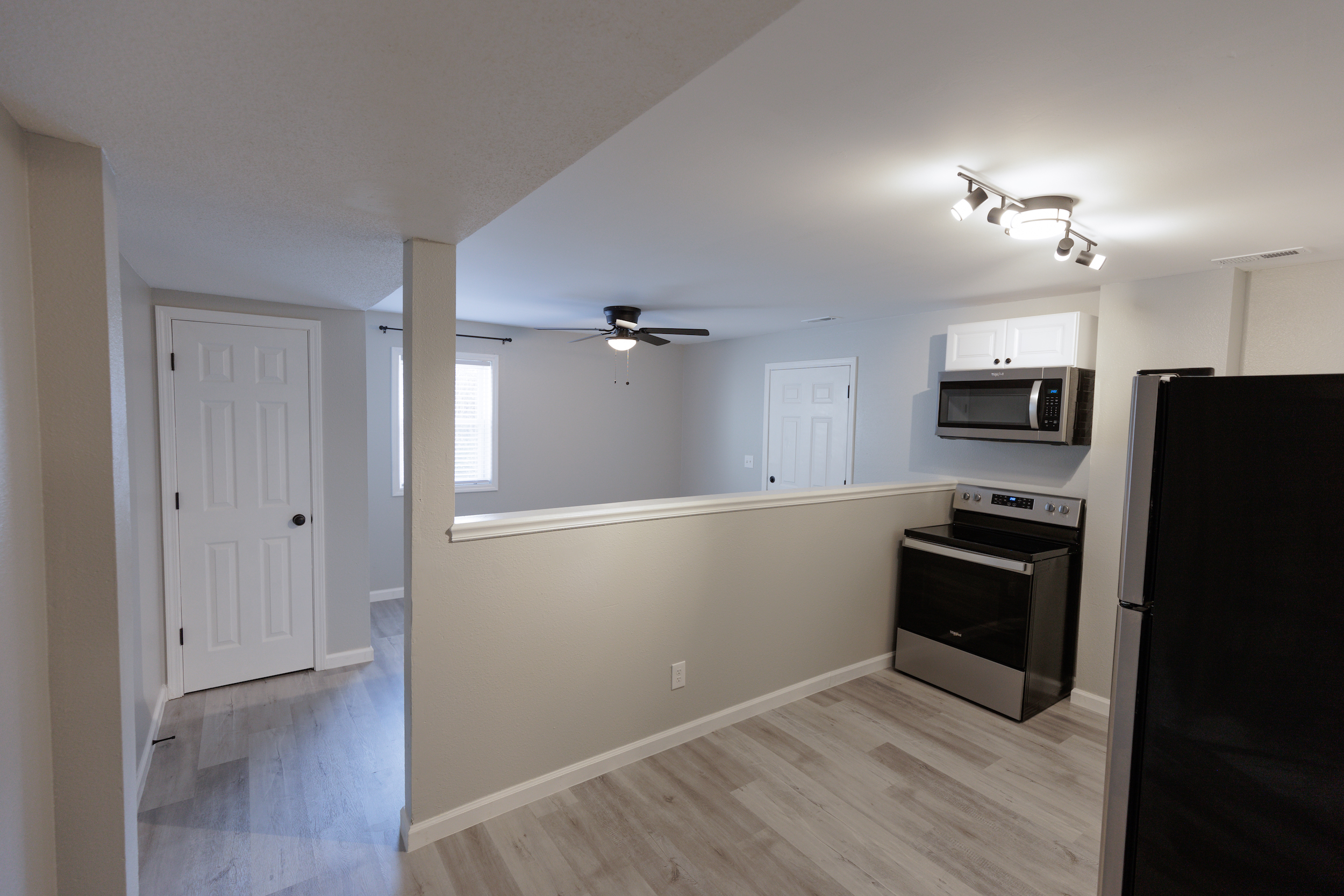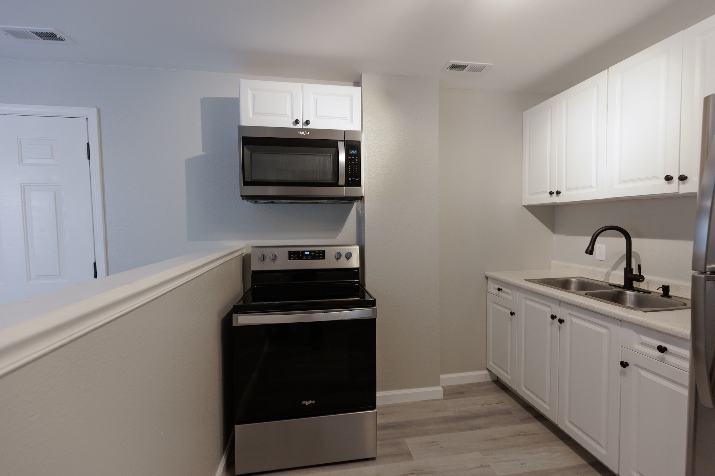 This beautiful 2 bedroom, 1 bath, 735 sq. ft. property has been completely renovated inside and out, featuring gorgeous luxury vinyl plank flooring throughout, modern matte black fans, lighting and fixtures, and brand new stainless steel refrigerator, range, and microwave.